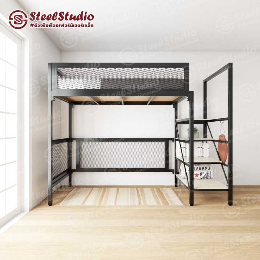 เตียงสูงตะแกรงเหล็กฉีก 3.5 ฟุต ไม้บันไดยาว วางของได้