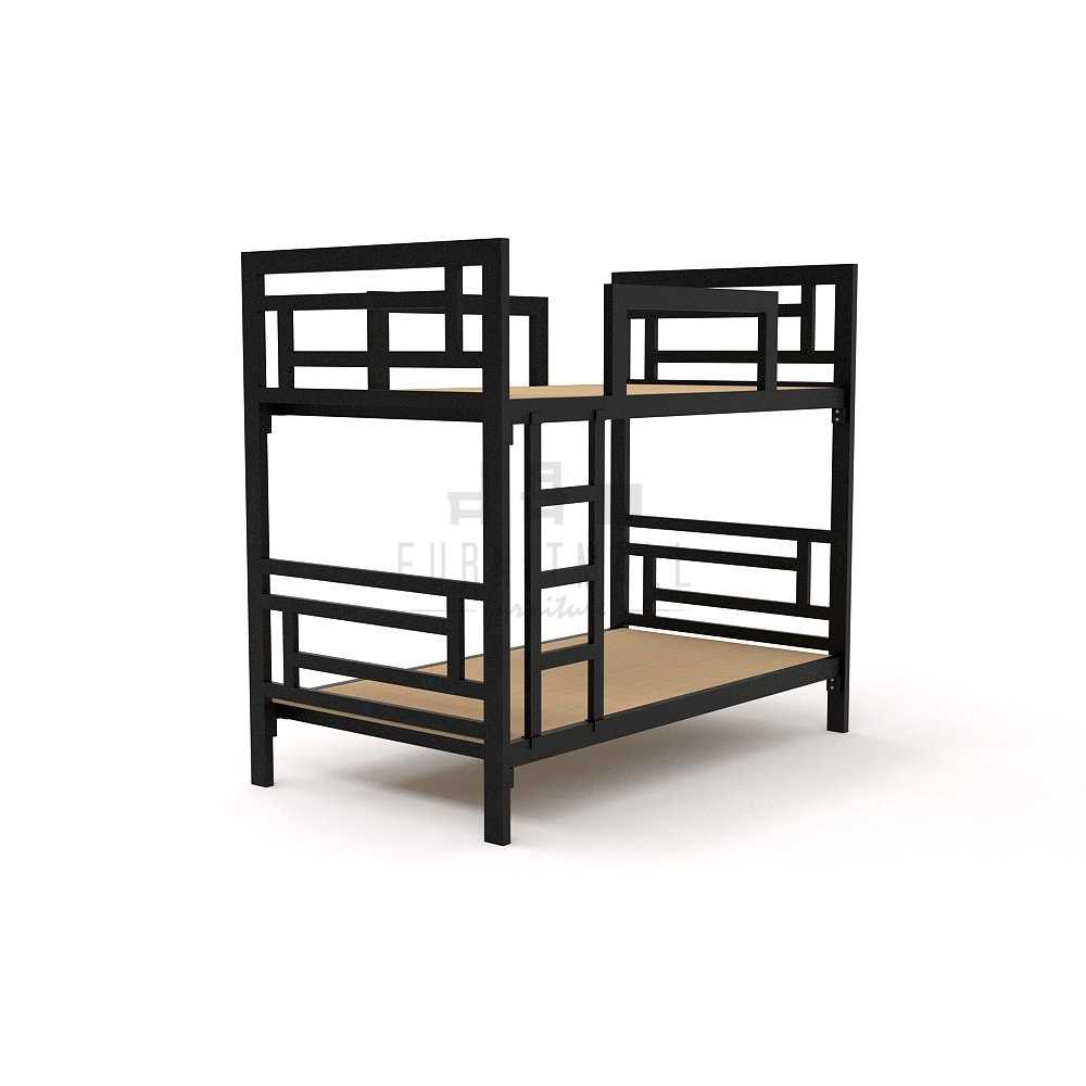 เตียงเหล็ก2ชั้น ลายแอล พร้อมถาดสไลด์ 3.5 ฟุต