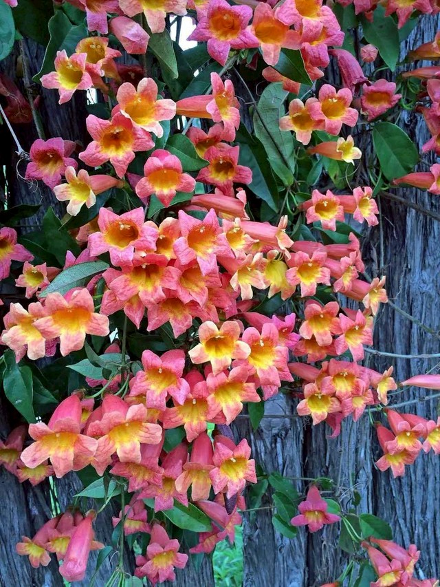 ดอกสีส้มอมชมพูตัดเหลืองสวยมาก เป็นไม้ เถาว์ เลื้อย