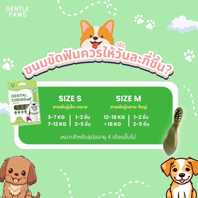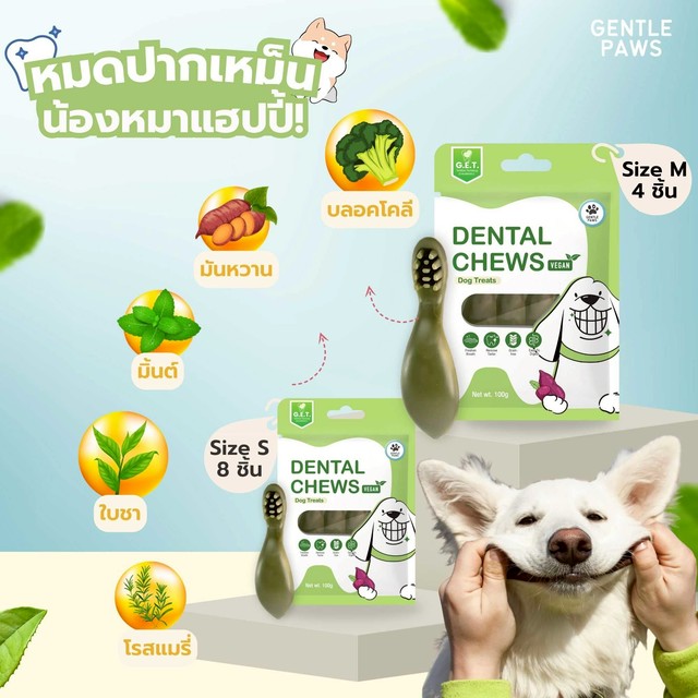 Gentle Paws Dental Chews ขนมขัดฟันรูปทรงแปรงสีฟัน สำหรับน้องหมาที่ช่วยดูแลสุขภาพช่องปากและฟันให้สะอาดและแข็งแรง