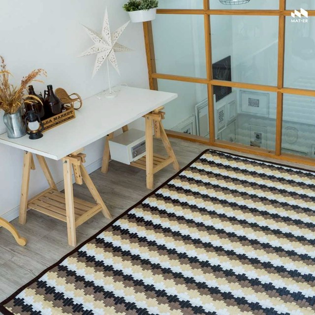 โทนสีน้ำตาล ครีม ขาว ดำ เสื่อแทนพรมลาย zen จะทำให้บ้านดูโปร่งโล่ง สบาย เหมาะสำหรับการแต่งบ้านที่เรียบง่าย ผ่อนคลายเหมือนอยู่ท่ามกลางธรรมชาติ แต่งบ้านด้วยบรรยากาศแบบญี่ปุ่นง่ายด้วยเสื่อแทนพรม Zen