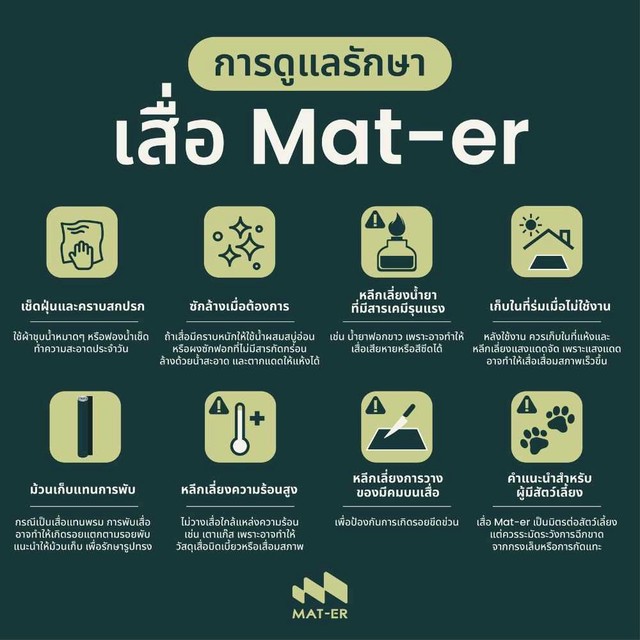 • หลีกเลี่ยงการใช้สารเคมีที่มีฤทธิ์รุนแรงทำความสะอาดเสื่อ
