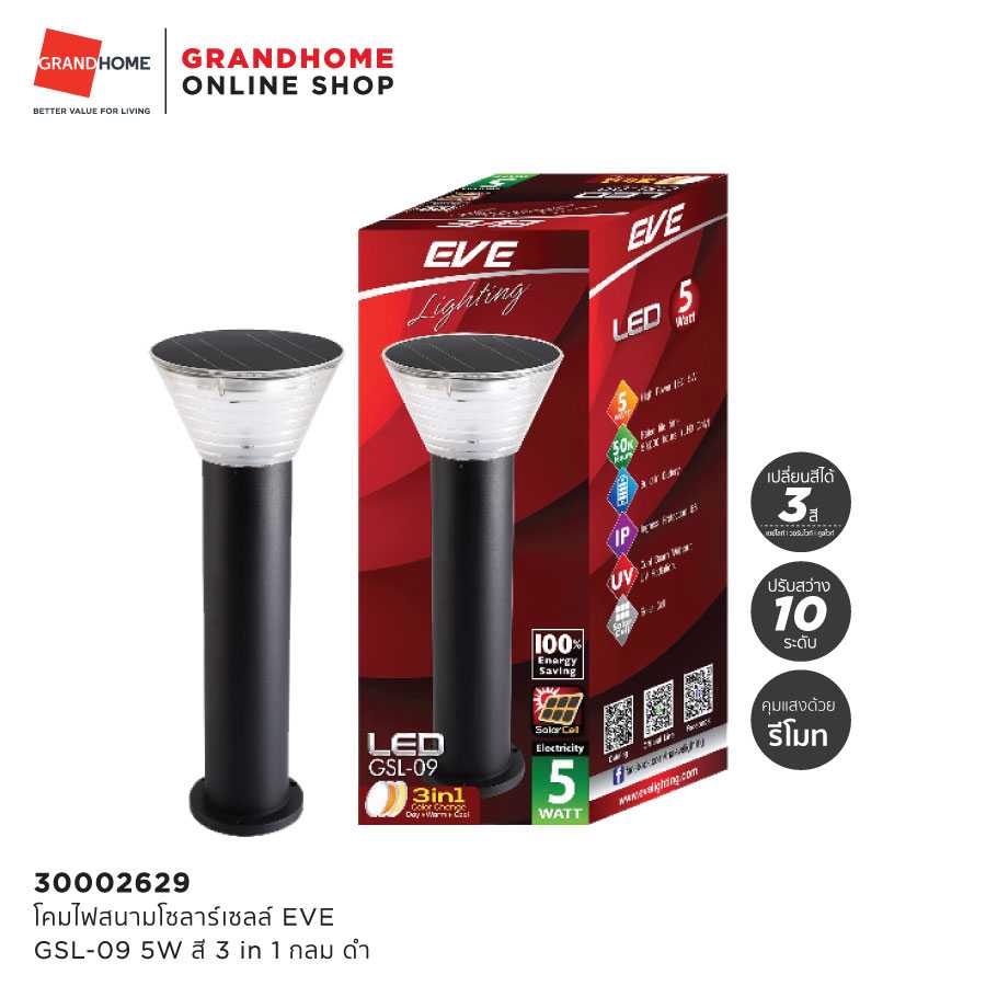 โคมไฟสนามโซล่าเซลล์LED EVE GSL-09 5W สี3in1 กลม ดำ