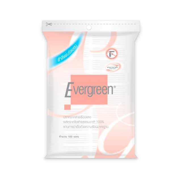 สำลีแผ่นรีดขอบ เอเวอร์กรีน 100 % 100แผ่น8852117121077(01)