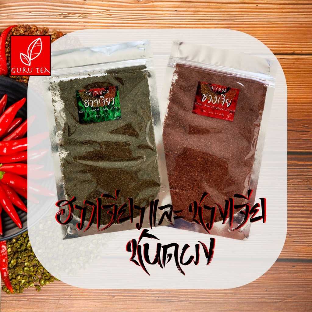 🔥 น้ำหนัก : ฮวาเจียว(สีเขียว-ให้ความชา) 30 กรัม, ชวงเจีย(สีแดง-พริกหอมเครื่องเทศ) 40 กรัม