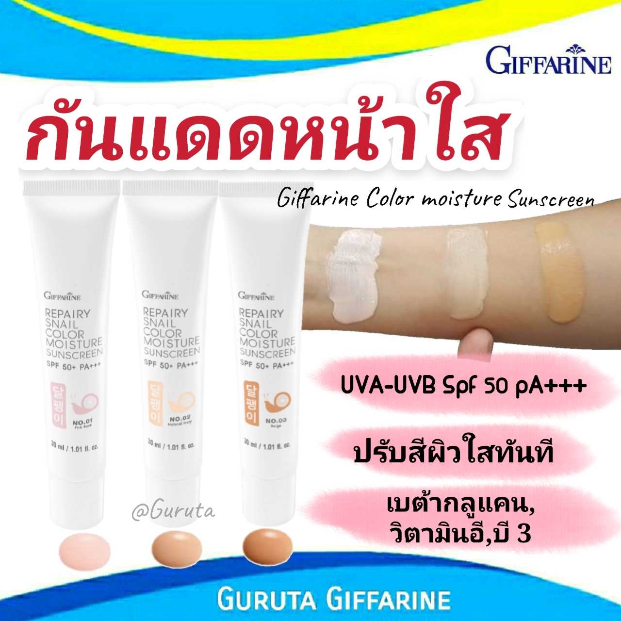 กิฟฟารีน รีแพรี่ สเนล คัลเลอร์ มอยส์เจอร์ ซันสกรีน เอสพีเอฟ 50+ พีเอ +++