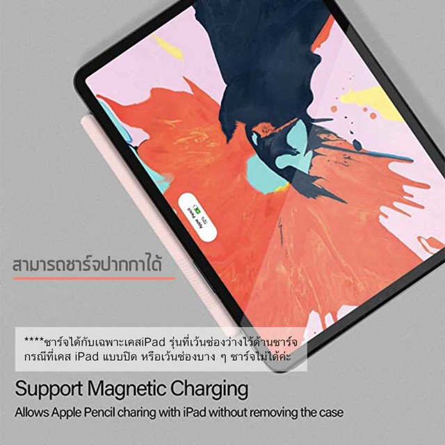 ⚠️สามารถแปะชาร์จกับตัวไอแพดได้ค่ะ กรณีที่ใช้เคสไอแพดแนะนะเป็นใช้ร่วมกันกับเคสไอแพดที่เว้นช่องด้านชาร์จปากกาแบบเปลือยนะคะ (ถ้าเคสiPad ส่วนที่กั้นชาร์จปากกา "หนาเกิน" ไปจะทำให้ชาร์จไม่ติดค่ะ)🚧🚧