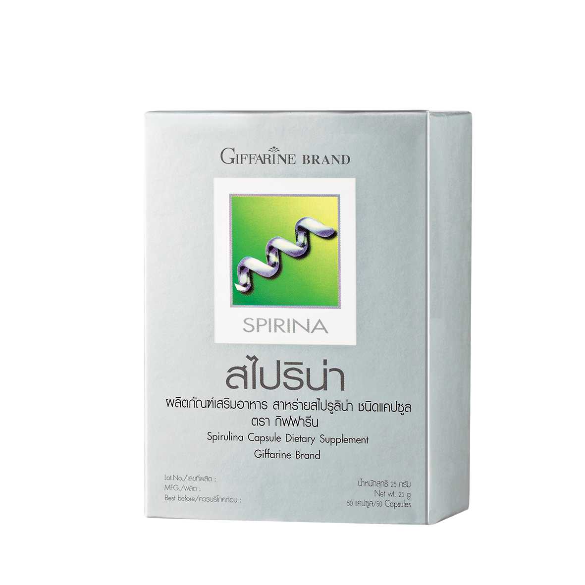 สไปริน่า ผลิตภัณฑ์เสริมอาหาร สาหร่ายสไปรูลิน่า แคปซูล ตรา กิฟฟารีน