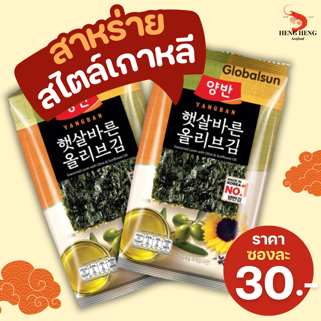 สาหร่ายเกาหลี สูตรน้ำมันมะกอก และ น้ำมันดอกทานตะวัน ขนาด 4 ก. / 1 ห่อ อบ ไม่ทอด ไขมันต่ำ