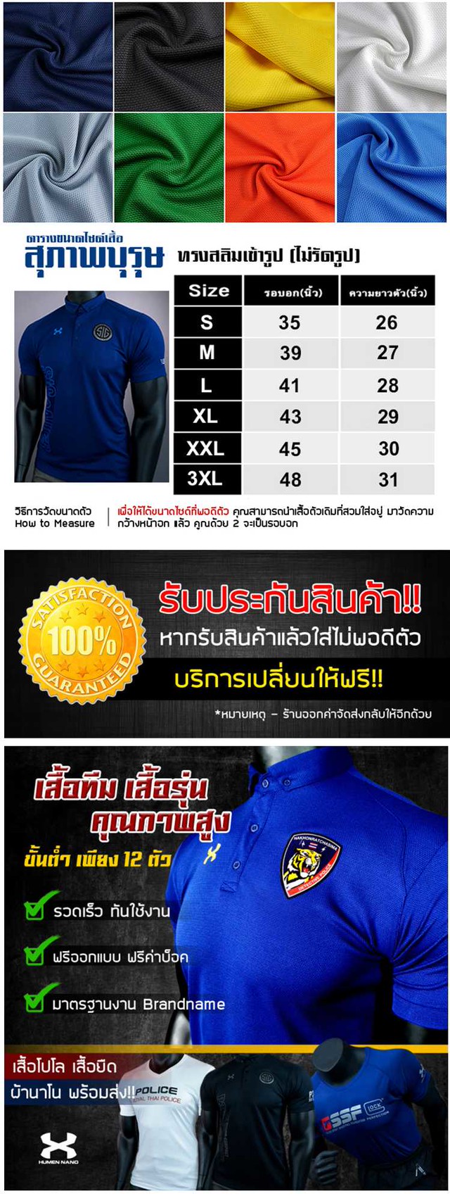 สีเสื้อโปโล : สีกรมท่า,สีขาว,สีดำ,สีเหลือง