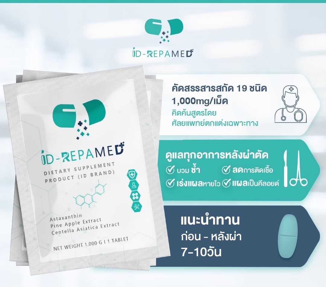 ID-Repamed ดูแลก่อนและหลังศัลยกรรม โบท็อกซ์ ร้อยไหม ฟิลเลอร์ ลดบวมช้ำ แผลเป็นคีย์ลอย