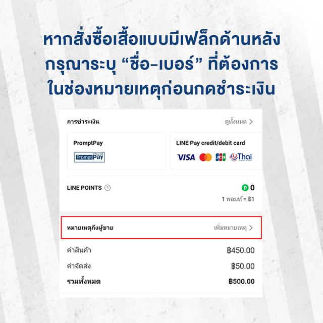 *โปรดระบุชื่อเเละเบอร์ที่จะสกรีนในหมายเหตุให้ครบ*