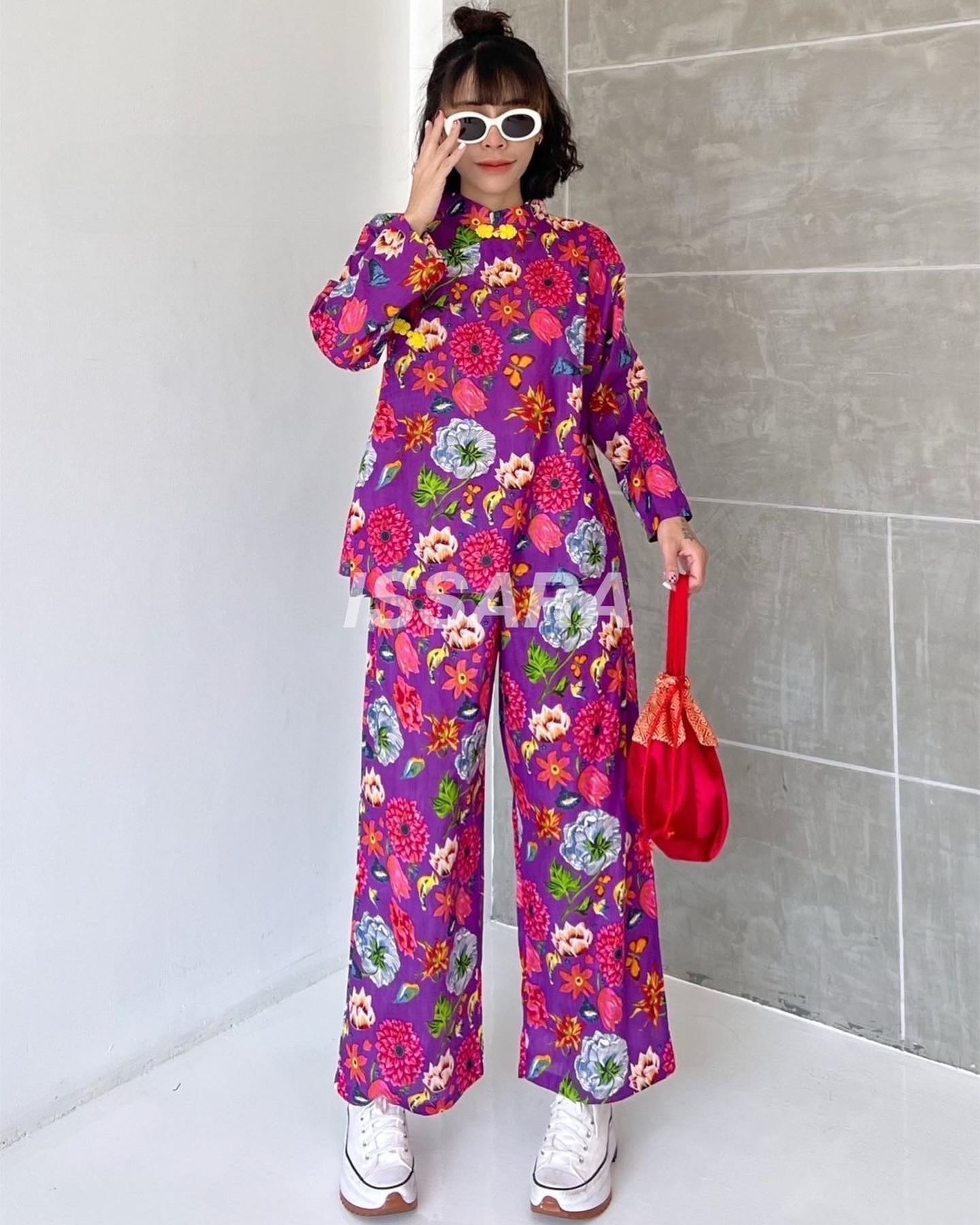 ISSARA (IC23-SET0021-4) ชุดเซ็ทกี่เพ้า ผ้าคอทตอลอินเดีย -กางเกง /เสื้อ/เดรส/ชุด/กี่เพ้า/คอจีน