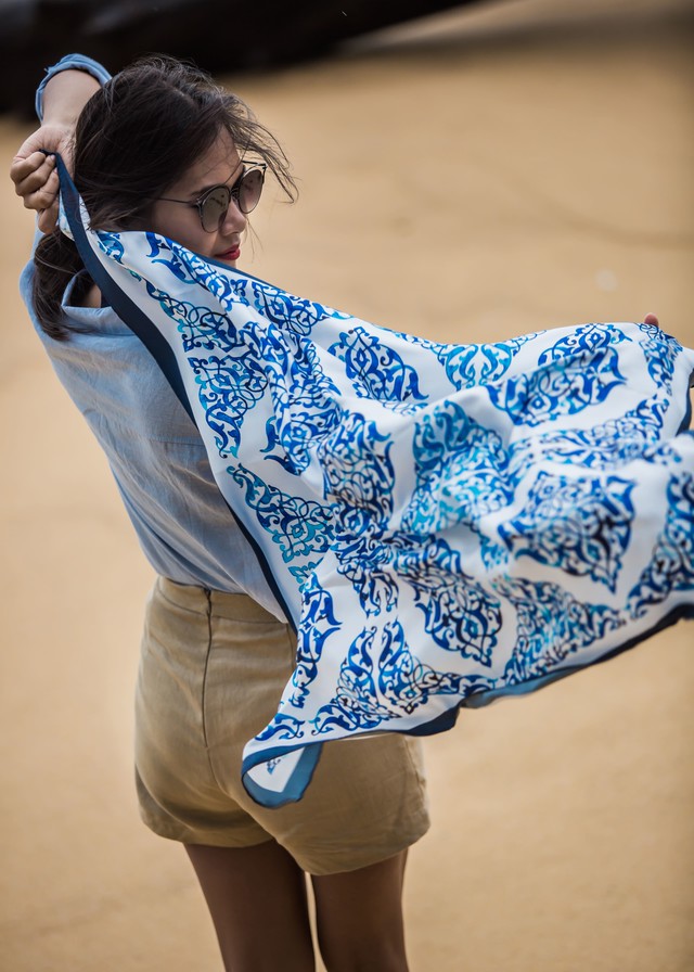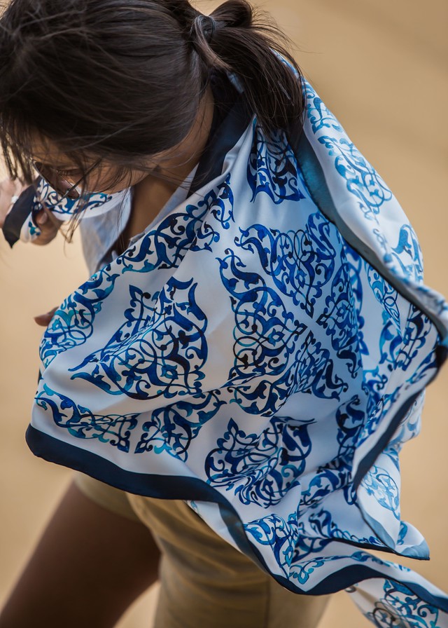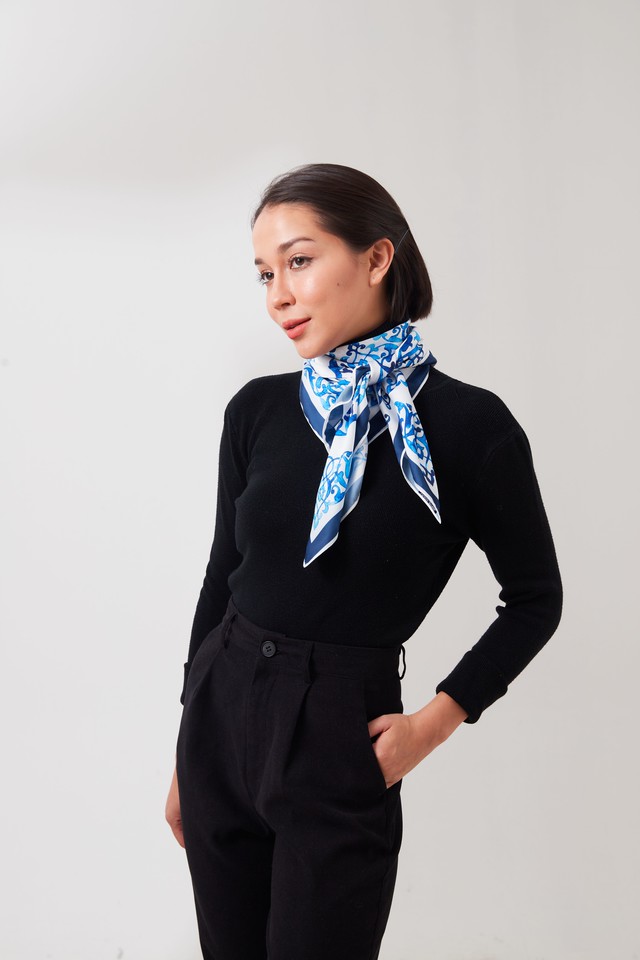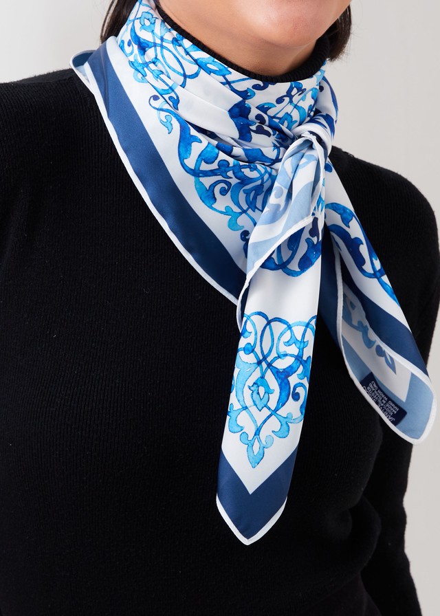 ผ้าพันคอ ผ้าคุลมไหล่ Silk Satin 90x90 cm ลาย Mosaique