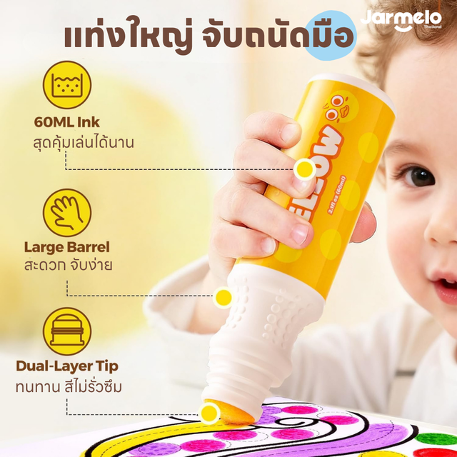 ให้เด็ก ๆ เรียนรู้และพัฒนาการทักษะการเล่นสีอย่างสนุกสนาน ด้วยชุดสี Dot painting เพียงแค่ปั้ม กด ลาก สีลงบนกระดาษหรือสร้างสรรค์ผลงานจากสีดอท เป็นการพัฒนาการทำงานระหว่างมือและตา สามารถใช้สื่ออุปกรณ์การเรียนการสอนเป็นหนึ่งในสีที่นิยมมากในต่างประเทศ