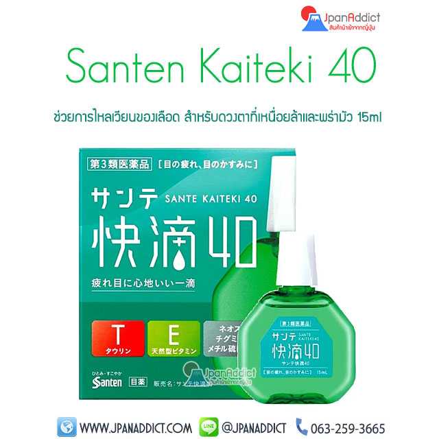 Santen Kaiteki 40 15ml ยาหยอดตาญี่ปุ่น สำหรับดวงตาที่เหนื่อยล้าและพร่ามัว ความเย็นระดับ3