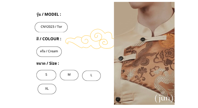 CNY 2023 เสื้อตรุษจีนผู้ชายสีครีมทองแต่งลาย รุ่น Tor