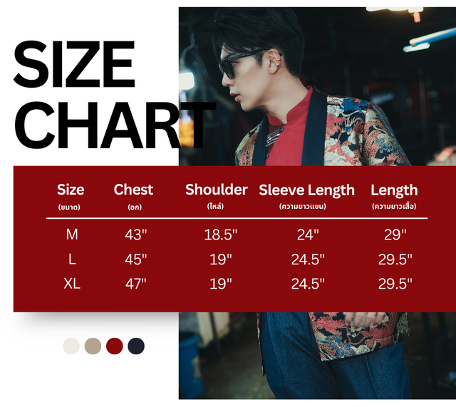 CNY 2026 เสื้อสูทตรุษจีน สีน้ำเงินแดงลายมังกร รุ่น EQUUS