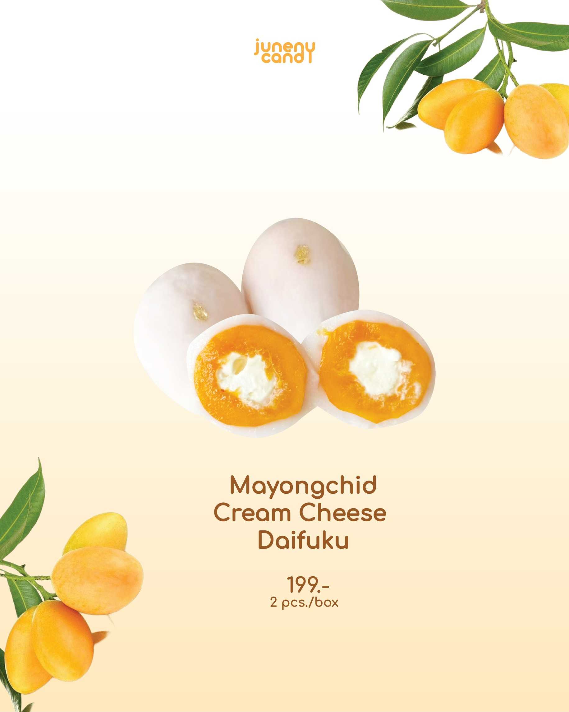 มะยงชิดทั้งลูกคัดสดๆ สอดไส้ครีมชีสแน่นๆ ห่อด้วยแป้งโมจินุ่มหนึบ
