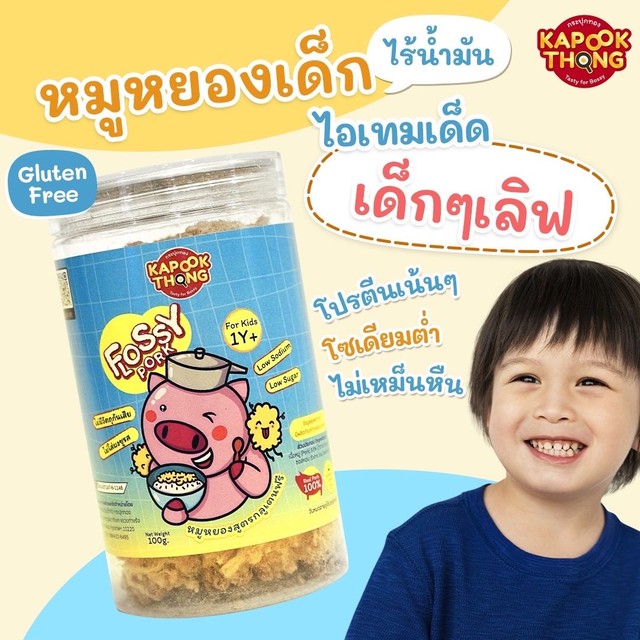 KAPOOKTHONG Flossy Pork หมูหยองเด็ก ไร้น้ำมัน สูตรกลูเตนฟรี หวานน้อย สำหรับเด็ก 1 ปีขึ้นไป