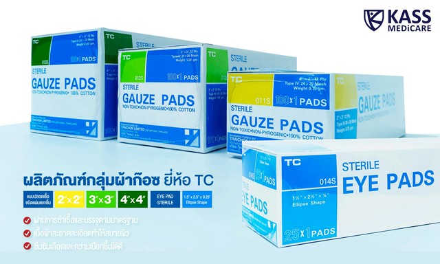 TC STERILE GAUZE PADS 2 x 2 นิ้ว, 3 x 3 นิ้ว, 4 x 4 นิ้ว (100 X 1 pads)