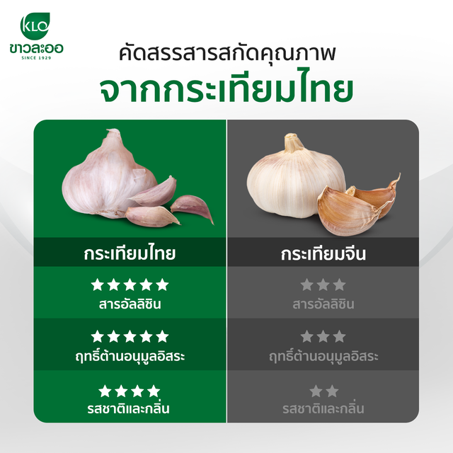 แต่ละเม็ดประกอบด้วยกระเทียมสกัด 333 มก. ซึ่งได้ปรับให้มีปริมาณ อัลลิซิน 1.5% T.A.P. หรือ 5000 ไมโครกรัม