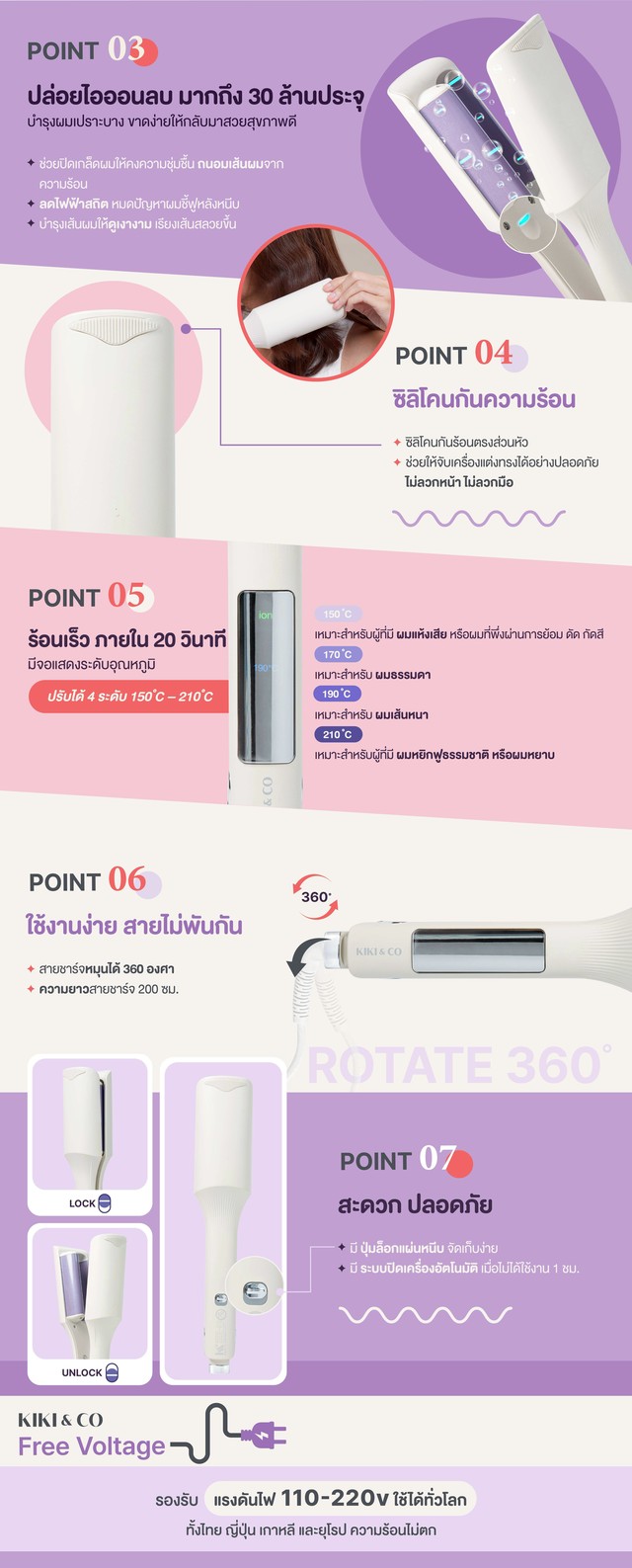 - ปลอดภัย ตัดไฟอัตโนมัติใน 1 ชม. - สายไฟหมุนได้ 360 องศา ไม่พันมือ