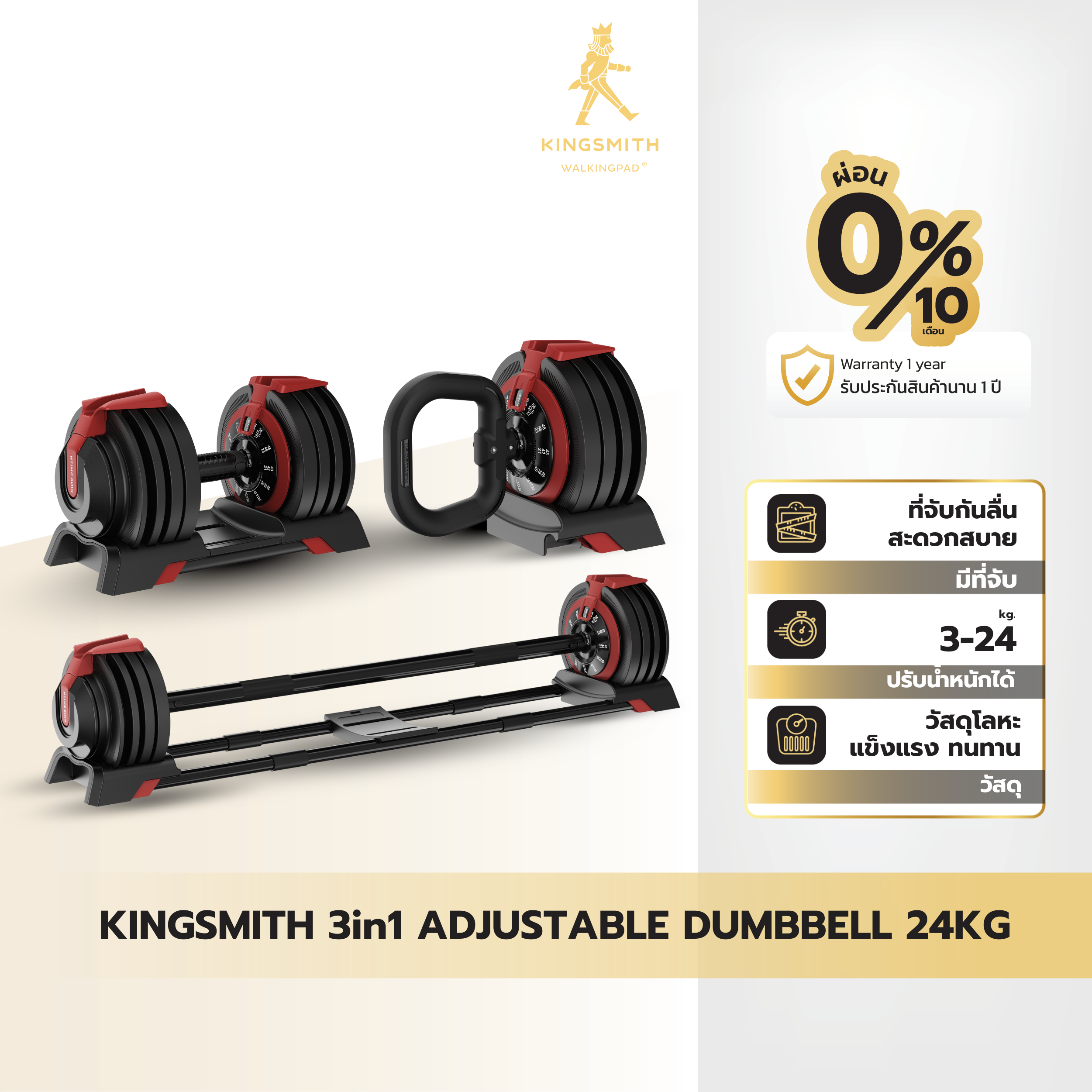 • ความหลากหลายในการใช้งาน: สามารถแปลงเป็นดัมเบล บาร์เบล หรือเคตเทิลเบล ได้ตามต้องการ