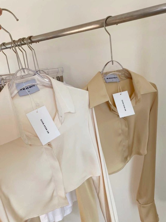 KWANJAI x WWW Cropped Shirt เสื้อเชิ้ต ครอป ผ้าซาติน แต่งเว้าเอว ซ่อนกระดุมหน้า