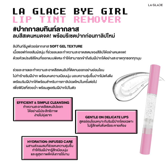 LA GLACE BYE GIRL LIP TINT REMOVER | ปากกาลบทินท์ลากลาส ลิปทินท์รีมูฟเวอร์ ใช้ง่าย ไม่ทำร้ายริมฝีปาก