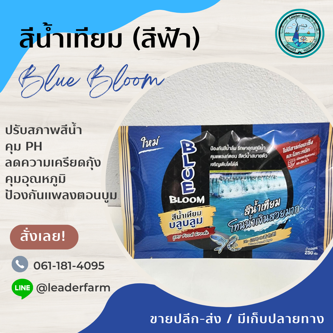 สีน้ำเทียม Blue Bloom แบบถุงละลายน้ำ ปรับสภาพสีน้ำในบ่อเลี้ยงกุ้งปลา สระน้ำคาเฟ่