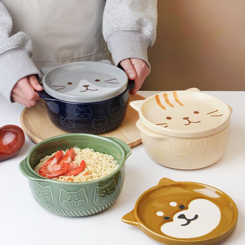 🐕พร้อมส่ง: ถ้วยมาม่า ลายการ์ตูนพร้อมฝาปิด