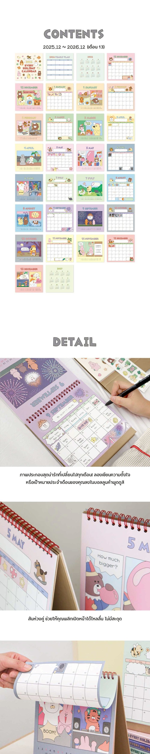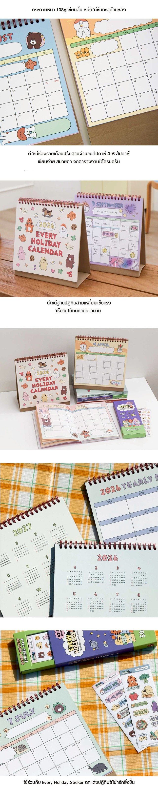 2026 Every Holiday Desk Calendar ปฏิทินตั้งโต๊ะ