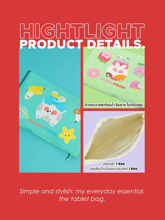 กระเป๋าผ้าแคนวาสสำหรับใส่แท็บเล็ต ผลิตจากผ้าแคนวาสสะท้อนน้ำคุณภาพดี ซึ่งคุณสมบัติมีลักษณะคล้ายกับผ้าดิบ หรือผ้ากระสอบ แต่มีความถี่ในการทอที่หนากว่าและมีเนื้อผ้าที่ละเอียดกว่ามาก สามารถระบายความร้อนได้ดี กระเป๋าพิมพ์ลายสุด Exclusive มีขนาดกำลังพอดี สามารถใส่แท็บเล็ต หรือของที่ใช้สำหรับทำงานหรือการเรียนได้อย่างสบาย มีให้เลือกถึง 10 สี 10 แบบ ในธีม Colorful สร้างความสดใสให้ทุกวันไม่น่าเบื่อ ด้วยสีสันทำให้ดูมีชีวิตชีวา มาเป็นตัวคุณที่ไม่ซ้ำใครได้เลยที่ Louis Montini เท่านั้น