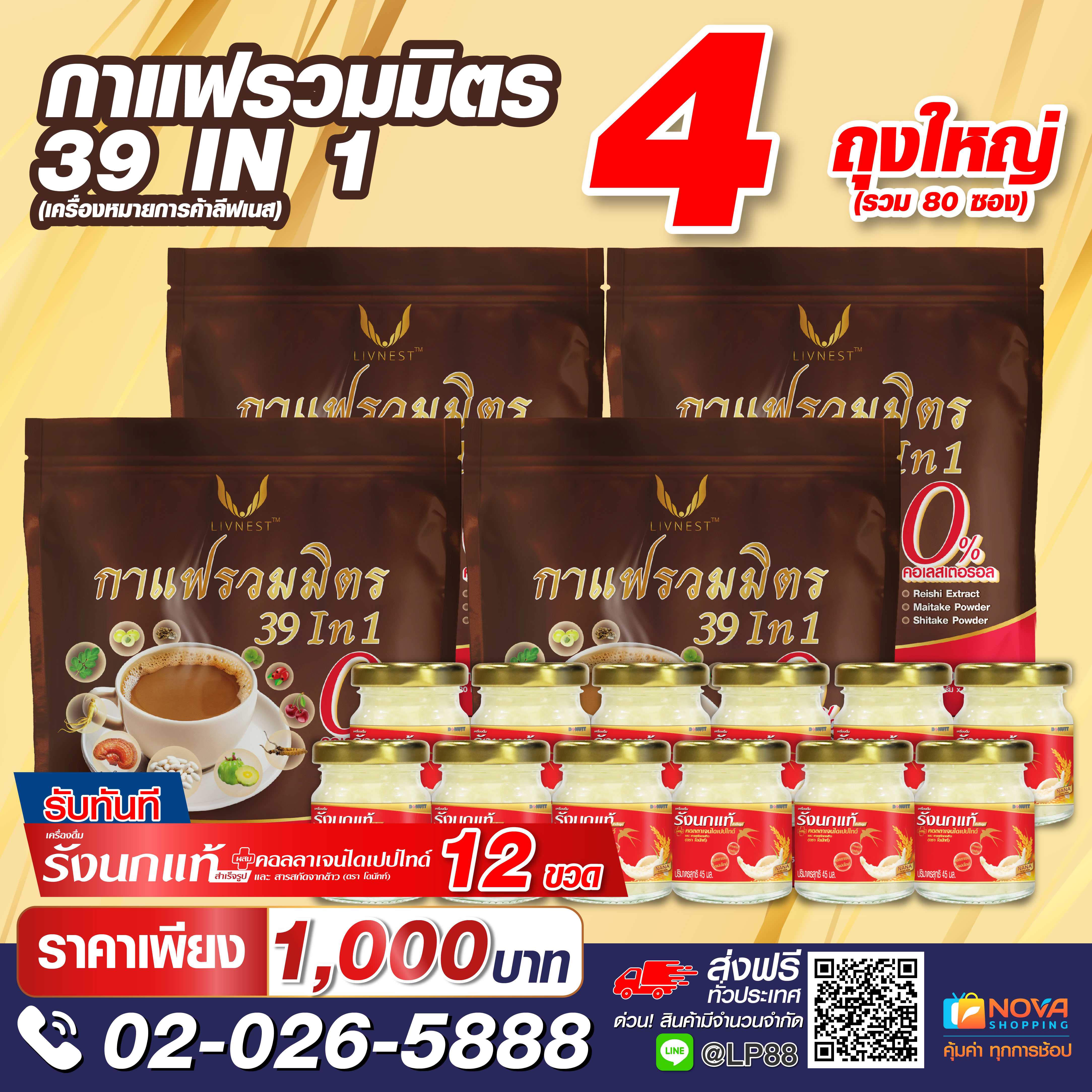 กาแฟปรุงสำเร็จชนิดผง รวมมิตร 39 อิน1 (เครื่องหมายการค้าลีฟเนส)