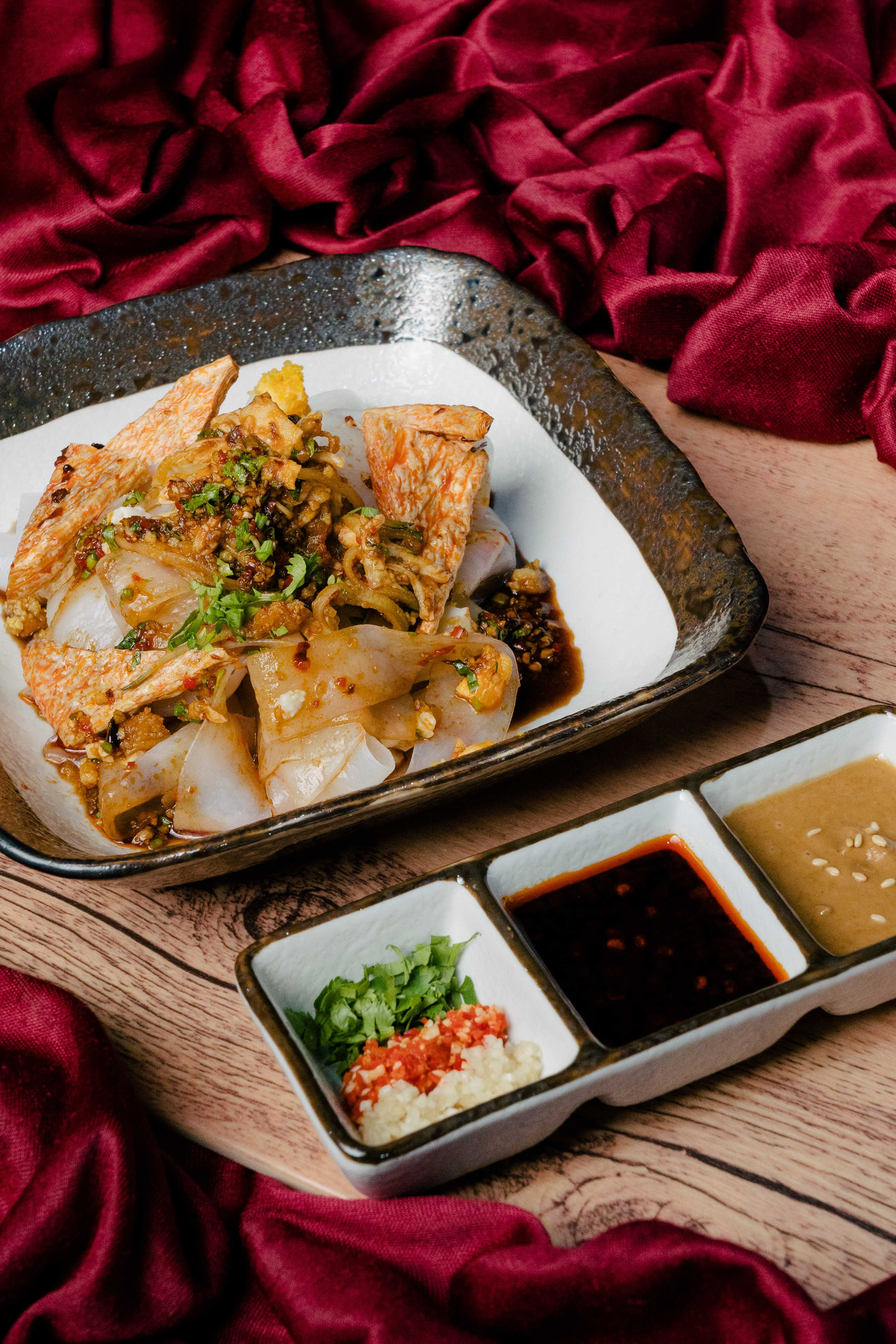 เป็นเมนูที่เสิร์ฟแบบเย็น เป็นอาหารทานเล่นของที่ประเทศจีน รสชาติคล้ายยำ แต่อยู่ที่ 18 cal