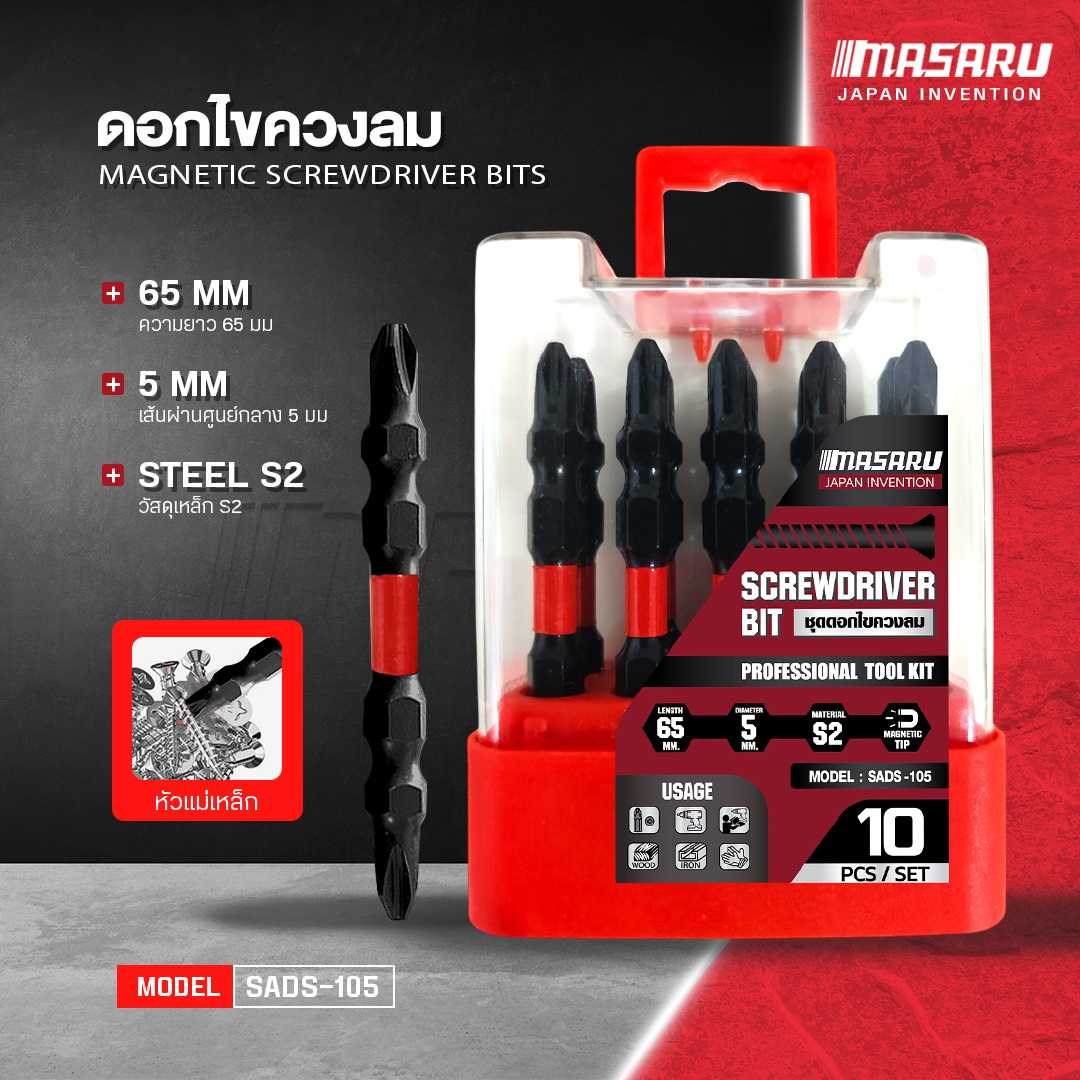 MASARU ชุดดอกไขควง ปลอกแม่เหล็ก ดอกไขควงหัวแฉก ปลายแม่เหล็ก