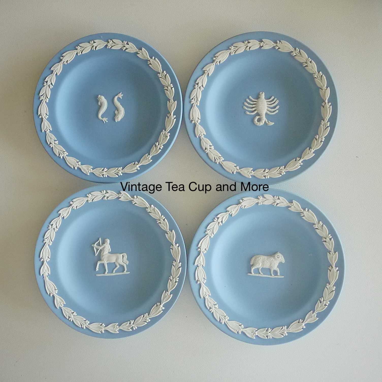 จาน Wedgwood Jasperware สีฟ้า ลาย Zodiac มี 7 ลาย ขนาด 11 cm สภาพดี ราคาใบละ 400 บาท