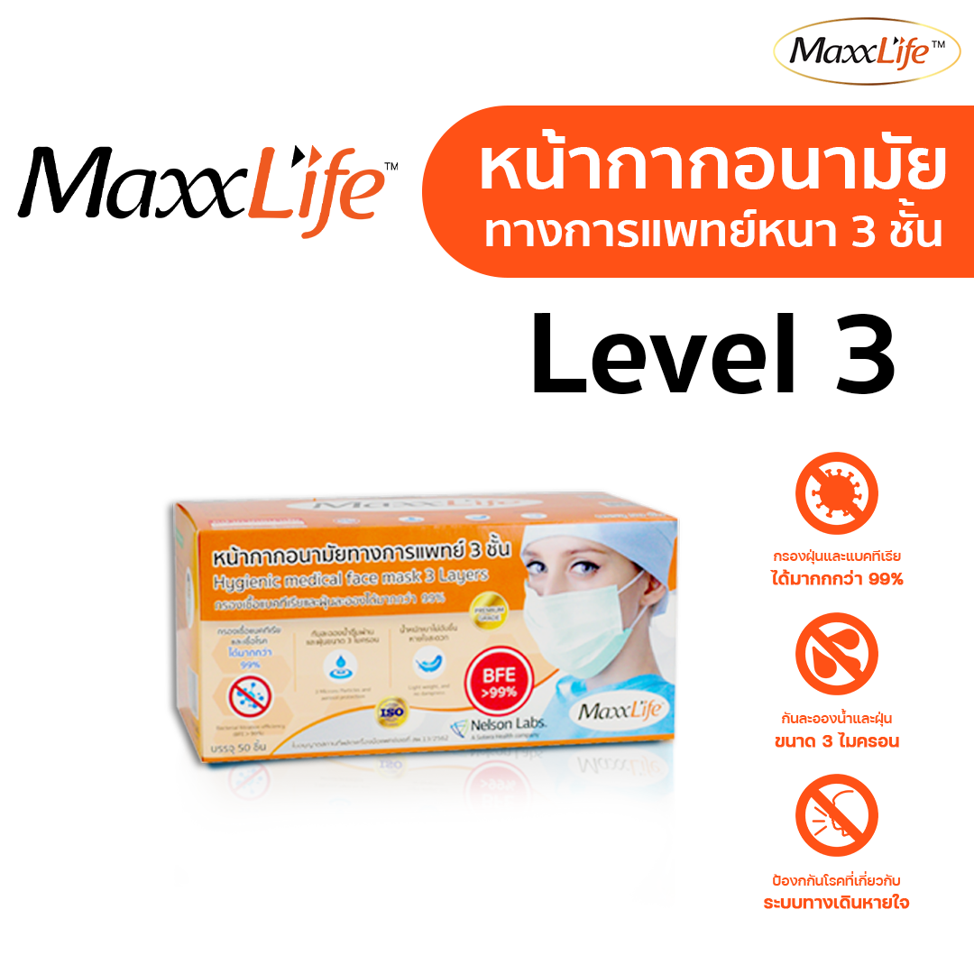 หน้ากาก อนามัย ทางการแพทย์ 3 ชั้น Maxxlife (1กล่อง 50 ชิ้น) - ของแท้ 100%