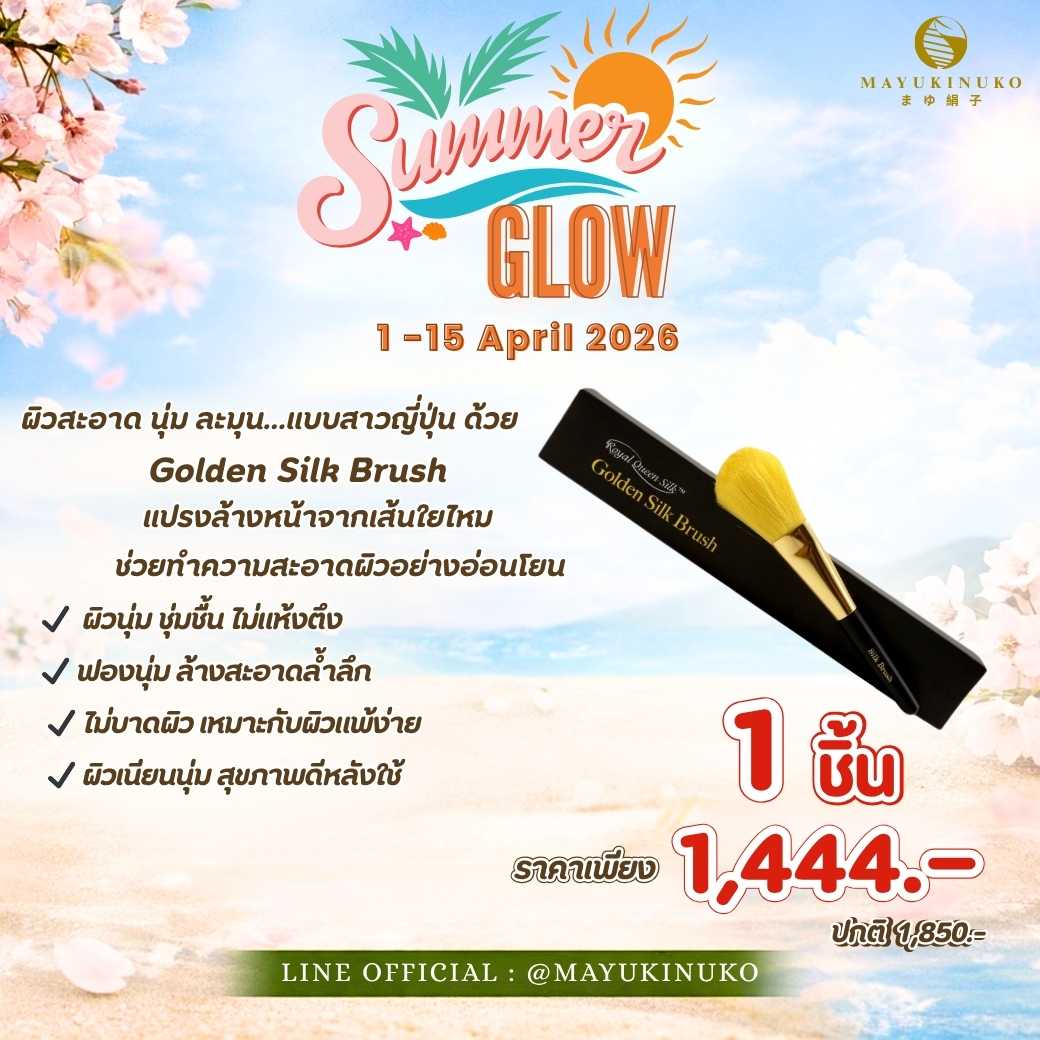 แปรงล้างหน้าที่ถักทอจากเส้นไหมสีทองธรรมชาติ อ่อนโยนเป็นพิเศษต่อผิวบอบบาง แพ้ง่าย