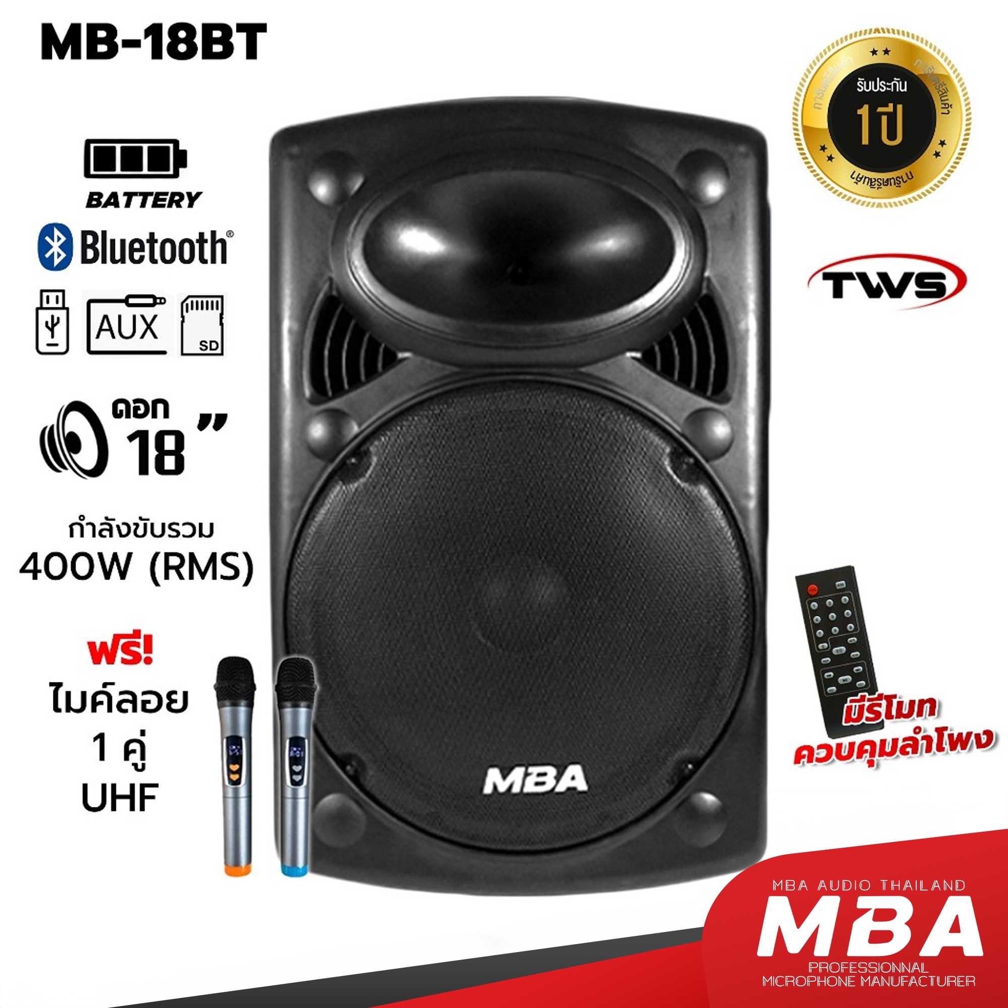 ตู้ลำโพงล้อลากบลูทูธ ขนาด 18 นิ้ว เสียงดีเบสหนัก MBA รุ่น 18BT พร้อมไมค์ลอยคู่