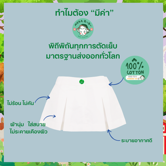 ผลิตจาก Cotton 100% พรีเมียมเกาหลี อ่อนโยนต่อผิวเด็ก ไม่ร้อน ไม่ระคายผิว