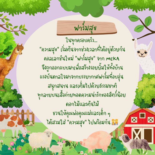 ลายฟาร์มเต็มไปด้วยสัตว์น้อยและธรรมชาติ ให้ความรู้สึกสนุกเหมือนพาเด็ก ๆ ไปเที่ยวฟาร์ม