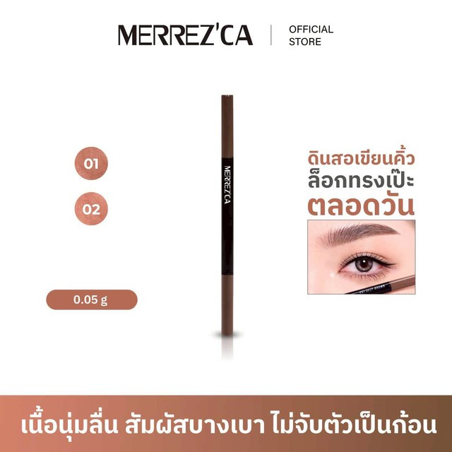 Merrezca Slim Line Eyebrow Pencil ดินสอเขียนคิ้วขนาดเล็กพกพาง่าย หัวดินสอเพียง 1.5 mm