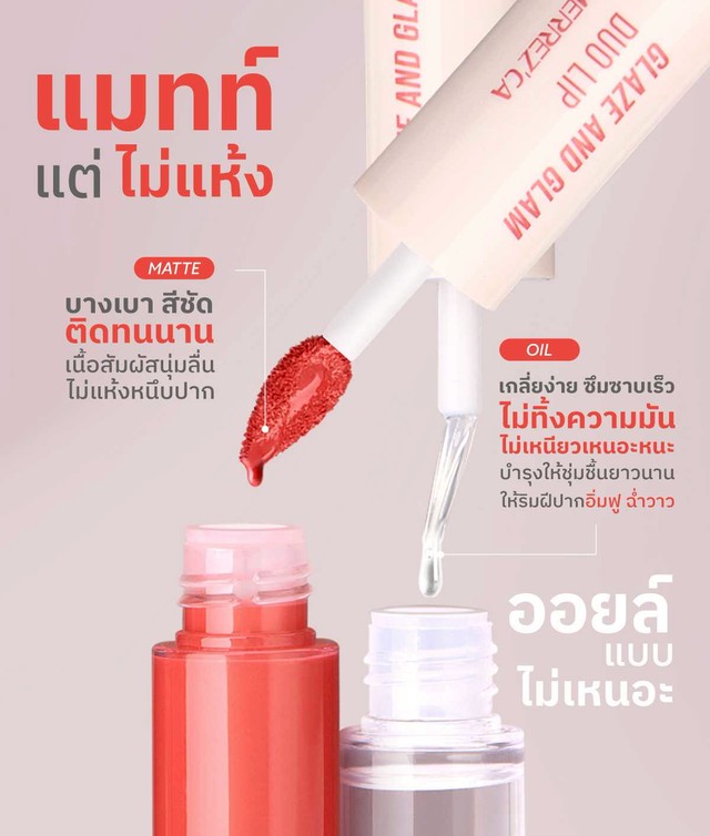 Merrezca Glaze & Glam Duo Lip ลิปดูโอ้ มีทั้ง เนื้อแมทท์ และเนื้อออยล์ ครบจบในแท่งเดียว