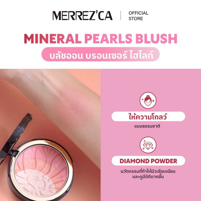 Merrezca Mineral Pearls Blush บลัชออน/บรอนเซอร์/ไฮไลท์ ในตลับเดียว