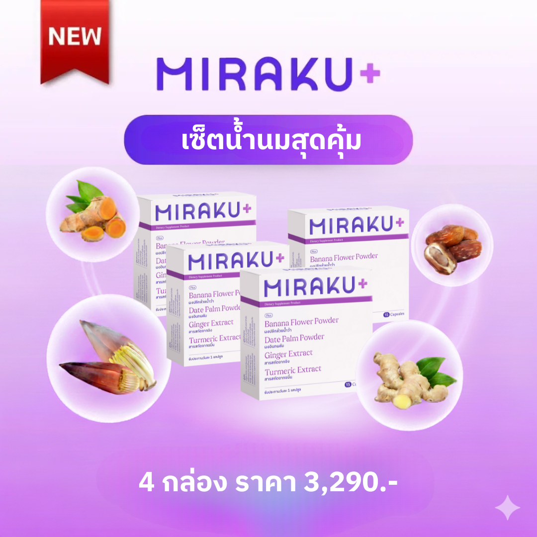 รับประทาน Miraku+ วันละ 1 แคปซูล ก่อนอาหาร โดยแนะนำให้รับประทานในช่วงเช้า เพื่อประสิทธิภาพที่ดีที่สุด