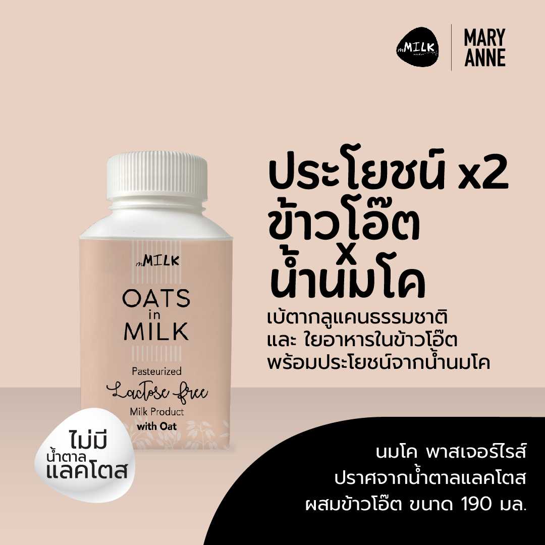 นมผสมข้าวโอ๊ต พาสเจอร์ไรส์ ปราศจากน้ำตาลแลคโตส 190 ก. / Pasteurized Lactose Free Oats in Milk 190 g.