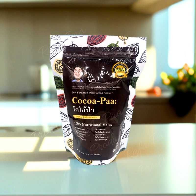 เครื่องดื่มโกโก้สำเร็จรูปชนิดผงสูตรผสมไบโอฟลาโวนอยด์ ป๋า สันติ มานะดี เกรดพรีเมียม ผสมไบโอฟลาโวนอยด์ ไม่มีนม ไม่มีน้ำตาล ช่วยกระตุ้นระบบ ไหลเวียนของโลหิต ลดความเสี่ยงของการอุดตันเส้นเลือด