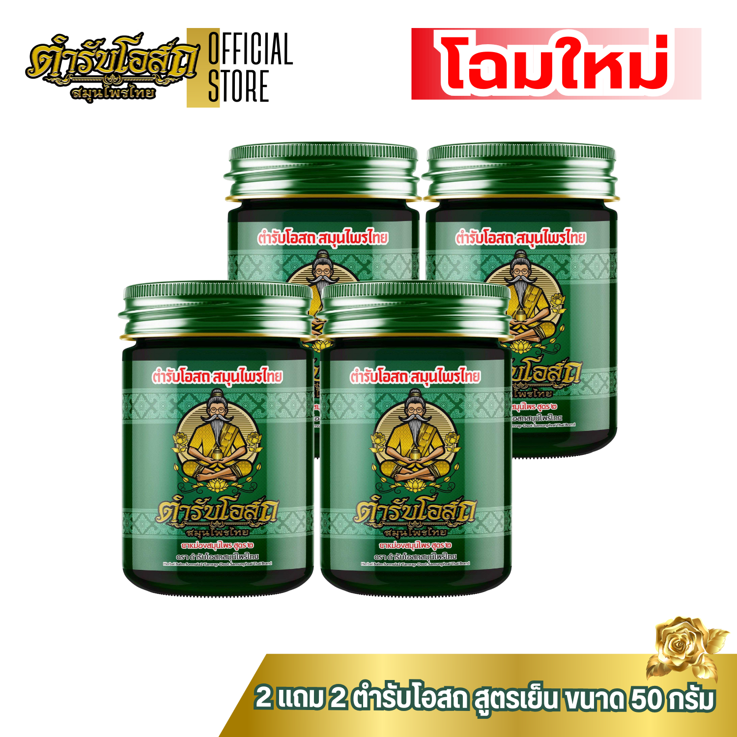 บาล์มตำรับโอสถ สมุนไพรไทย สูตรเย็น 2 แถม 2 ขนาด 50 กรัม